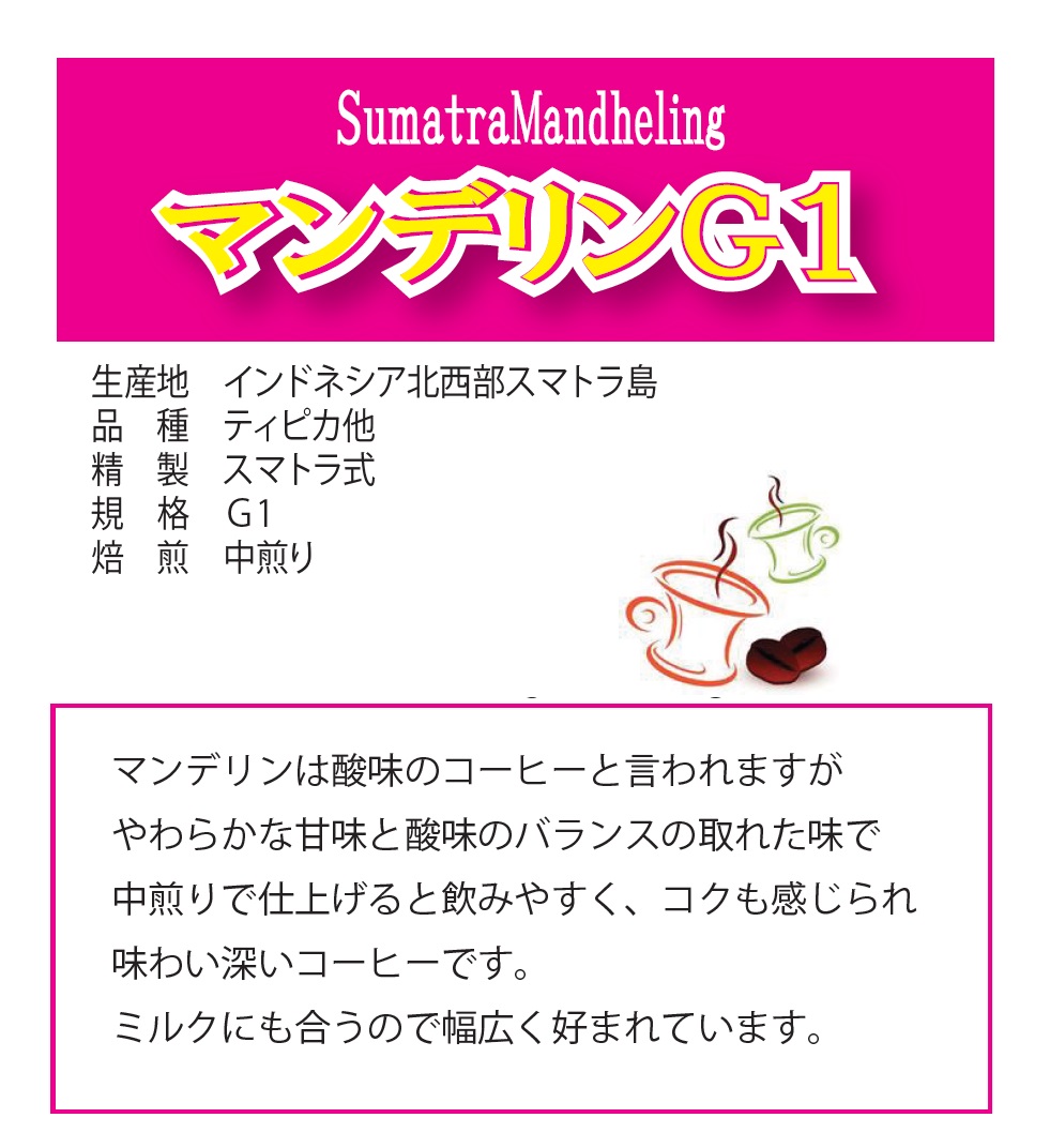 素直な飲みやすい味でマンデリン好きとしては少々物足らないというのが本音です。